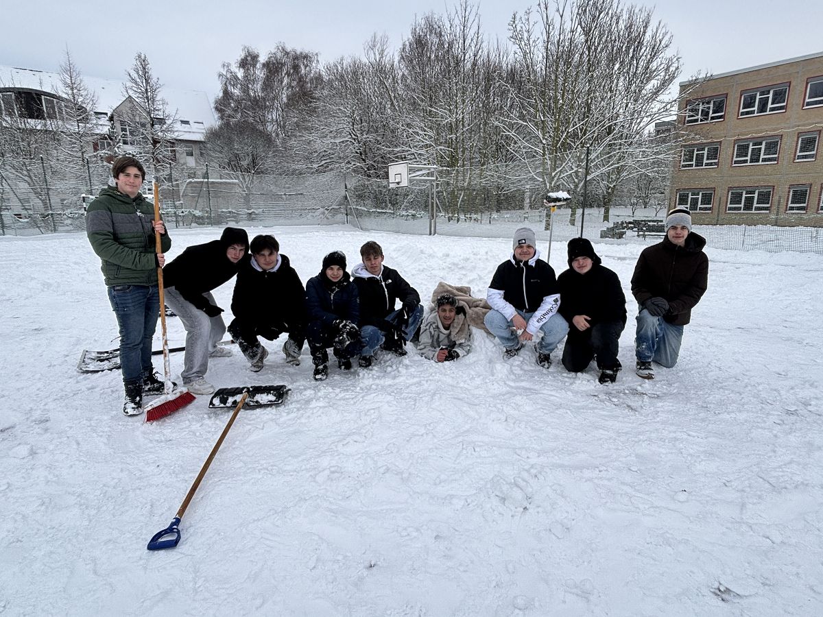 Nach dem starken Schneefall am heutigen Morgen (26.01.2026) haben sich Schüler der 9. Klasse in den großen Pausen freiwillig bereit erklärt, auf dem Schulhof und dem Parkplatz Schnee zu schippen. Nach getaner Arbeit haben sich die fleißigen Helfer mit dem Bau eines Iglus belohnt. Anschließend konnten sie zufrieden den Heimweg antreten.