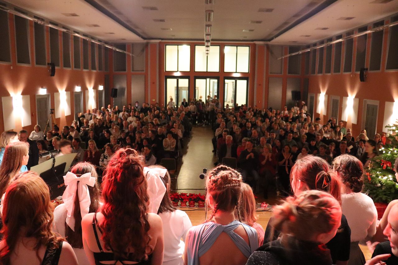 Es ist seit Jahrzehnten eine schöne Tradition, dass die Schulgemeinschaft unseres Gymnasiums die Eltern, Großeltern, Lehrer und auch ehemalige Schüler mit einem bunten Programm auf die Weihnachtszeit einstimmt. Unter der Leitung unserer Musiklehrerinnen stellten Schüler aller Klassenstufen ihr musikalisches Können unter Beweis. Der Schulchor gab mit John Lennons „Imagine“ - seinem Traum vom Frieden für alle Menschen - ein Leitmotiv für den festlichen Abend. Antonio Vivaldis „Der Winter“ - dargeboten von Polina Karpeyev (Kl.9-2) und Henrike Spittel war nur eine der zahlreichen musikalischen Glanzleistungen. Jette Knobloch (Kl. 9-3) präsentierte mit ihrem Poetry slam sehr tiefgründige Gedanken, die Jugendliche im Advent bewegen. Die Tanz-AG - geleitet von Frau Machleb - und die Bauchtanzgruppe Banato sowie Chantal Asmus, Theresa Blankenburg und Michel Bonsack mit ihrer Bodenkür sorgten für den sportlichen Schwung. Zum Abschluss brillierten unsere Frey(i)tags-Streicher - das Schulorchester des Gymnasiums - mit einem Auszug aus Mussorgskys „Bilder einer Ausstellung“.