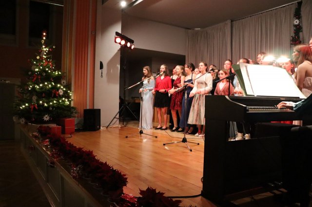 Der Schulchor, der seit Jahren von Frau Raddatz geleitet wird, gestaltete den letzten Teil des Programms und gab einen kleinen Einblick in das äußerst vielseitige Repertoire, nach „Only time“ von Enya und „ I will follow him“ aus dem Musical „Sister act“ erklangen „Leuchte mein Licht“ und „Mary did you know“.