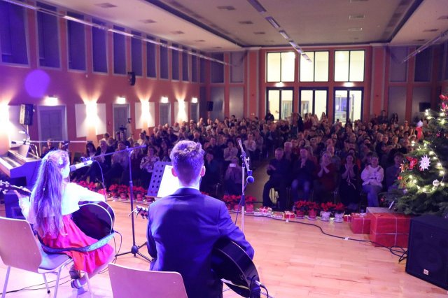 Zum Abschluss sangen alle Akteure und das Publikum gemeinsam „Leise rieselt der Schnee“. Nicht nur der langanhaltende Applaus, sondern auch die prall gefüllten Spendenmützen waren ein Dank an alle Akteure auf der Bühne und die vielen Helfer, die zum Gelingen der Estrade beigetragen haben. Ein Spendenscheck in Höhe von 721,60 € wird in den nächsten Tagen an den Verein Helping Angels Gotha überreicht werden.