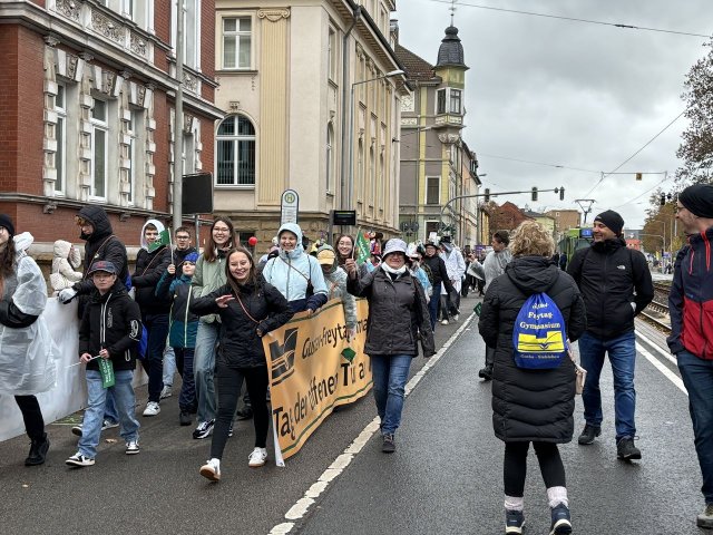 Mit 90 Schülern unseres Gymnasiums waren wir inmitten der ca. 1500 Teilnehmer des Umzugs nicht zu übersehen und erst recht nicht zu überhören.