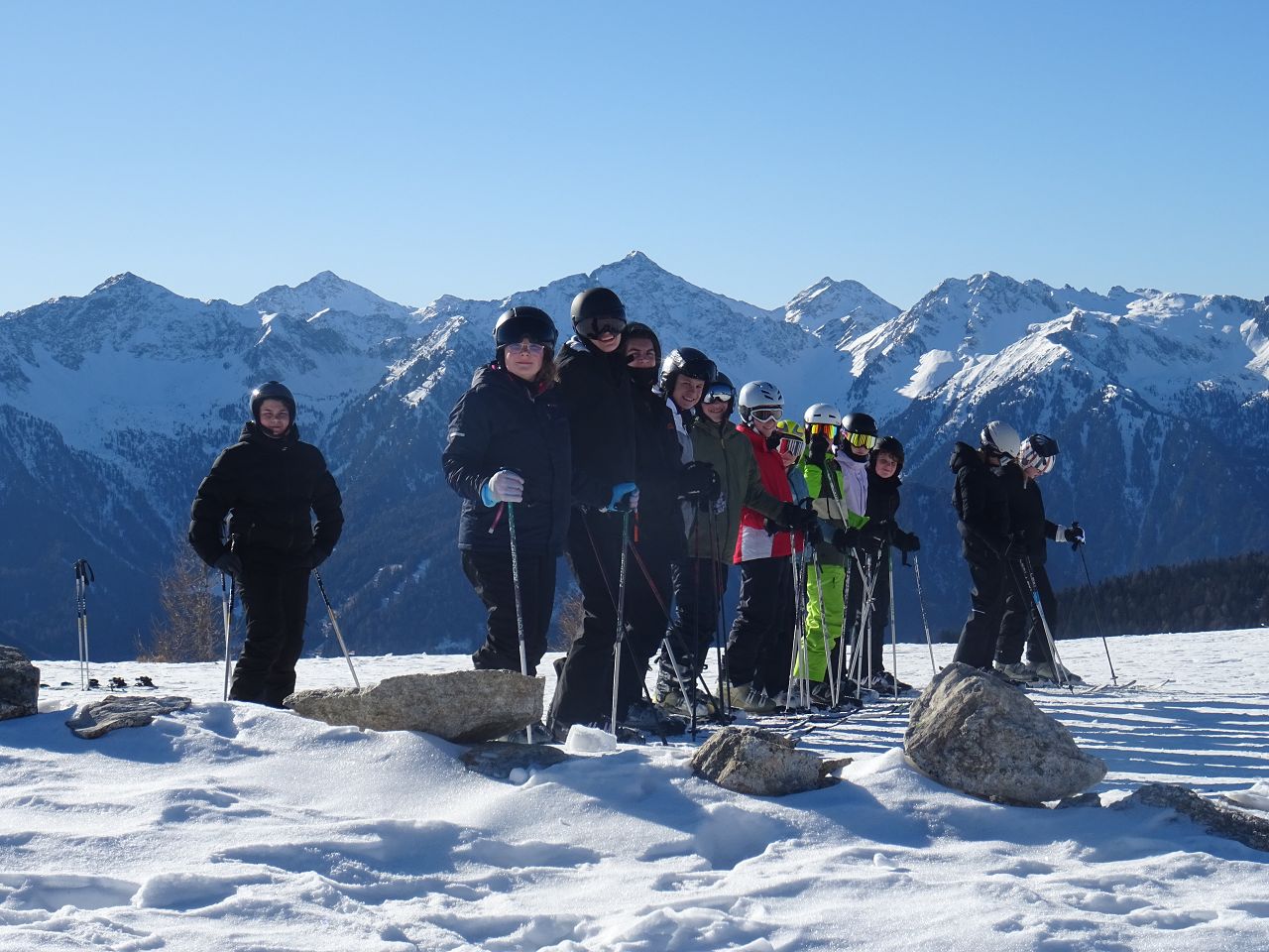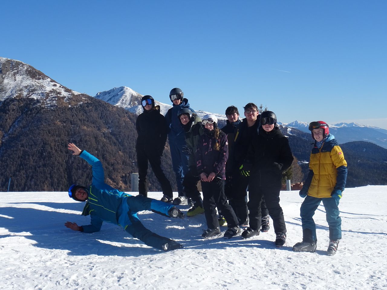 Der dritte Skitag startete mit einem gemütlichen Frühstück und einer pünktlichen Abfahrt zur Skipiste. Dort wurden wir mit Kaiserwetter begrüßt und hatten das Glück, unser Können auf noch leeren und perfekt präparierten Pisten zu beweisen. Nach der Mittagspause verließ die Ersten die Kraft und sie gönnten sich ein Sonnenbad.