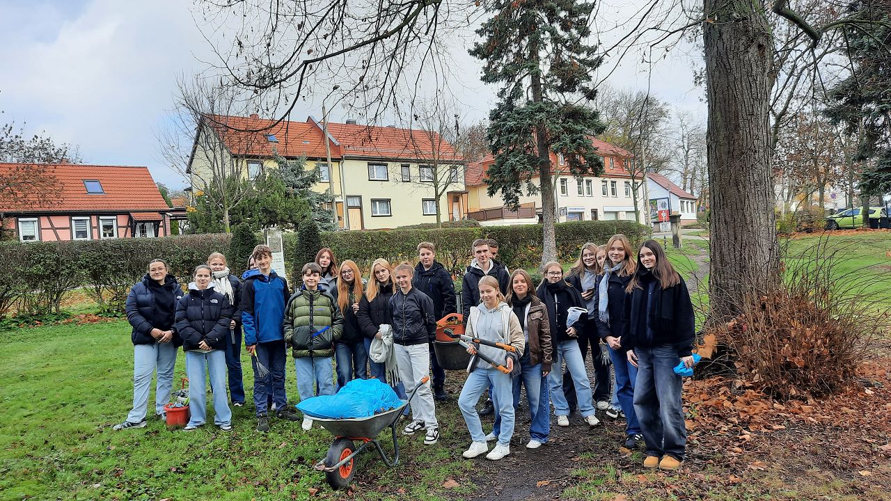 Auch in diesem Jahr machte der Wahlpflichtkurs Naturwissenschaften und Technik Klasse 9 das Grab unseres Namenspatrons Gustav Freytag in Siebleben wieder winterfertig: Rosen wurden zurückgeschnitten, letzte Unkräuter entfernt und Laub gerecht.