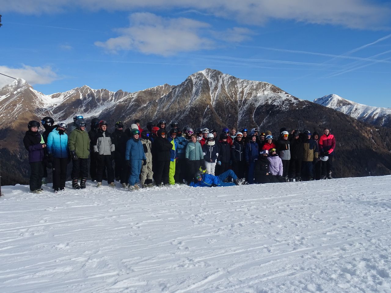 Der 1. Tag startete mit Musik und guter Laune. Anschließend gab es ein leckeres Frühstück und bereits um 8 Uhr ging es mit dem Bus das erste Mal ins Skigebiet Jochtal. Mit Skiausrüstung ausgestattet, begann der Tag auf der Piste. Während im Anfängerkurs die Grundlagen des Skifahrens gelehrt wurden, fuhren die fortgeschrittenen Gruppen schon fleißig die Pisten herunter. Gegen 12 Uhr ging es mit der Gondel zum Bergrestaurant Jochtal, um die am Vortag gewählten Gerichte zu verspeisen.