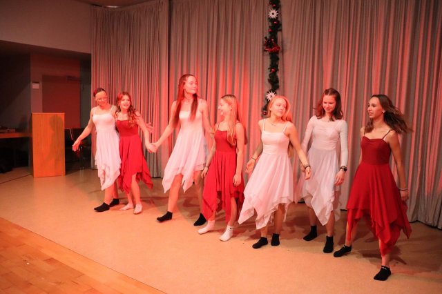 Weihnachtsmelodien, leckere Plätzchen und Glühweinduft - so empfingen die Freytagianer ihre zahlreichen Gäste zum traditionellen Konzert am 12.12.2025 in der Aula der Verwaltungsfachschule. Die Schülerinnen der Tanz - AG, geleitet von Frau Machleb, gestalteten mit ihren winterlichen Interpretationen von „All I want for Christmas“ und anderer Hits den Rahmen des umfangreichen Programms. Patricia, Mattis, Lenara und Arthur begeisterten mit ihren Darbietungen am Klavier und intonierten verschiedene Filmmelodien. Camillo ließ mit seinem Saxophon das „Winter wonderland“ erscheinen, Clara erinnerte mit „Küß mich, lieb mich, halt mich“ daran, dass zum Advent natürlich „Die drei Haselnüsse für Aschenbrödel“ gehören. Aber auch nachdenkliche Töne erklangen, so von Lenara, Filina, Ara, Magdalena und Frederic, die mit aktuellen Titeln von Keane und Coldplay aber auch dem traditionellen „Stern über Bethlehem“ ihre stimmliche Brillianz unter Beweis stellten. Zudem stellte Frederic mit dem französischen Gedicht „Mon cartable“ den Inhalt eines Schulranzens vor.