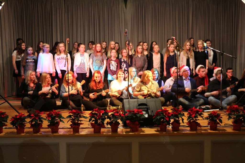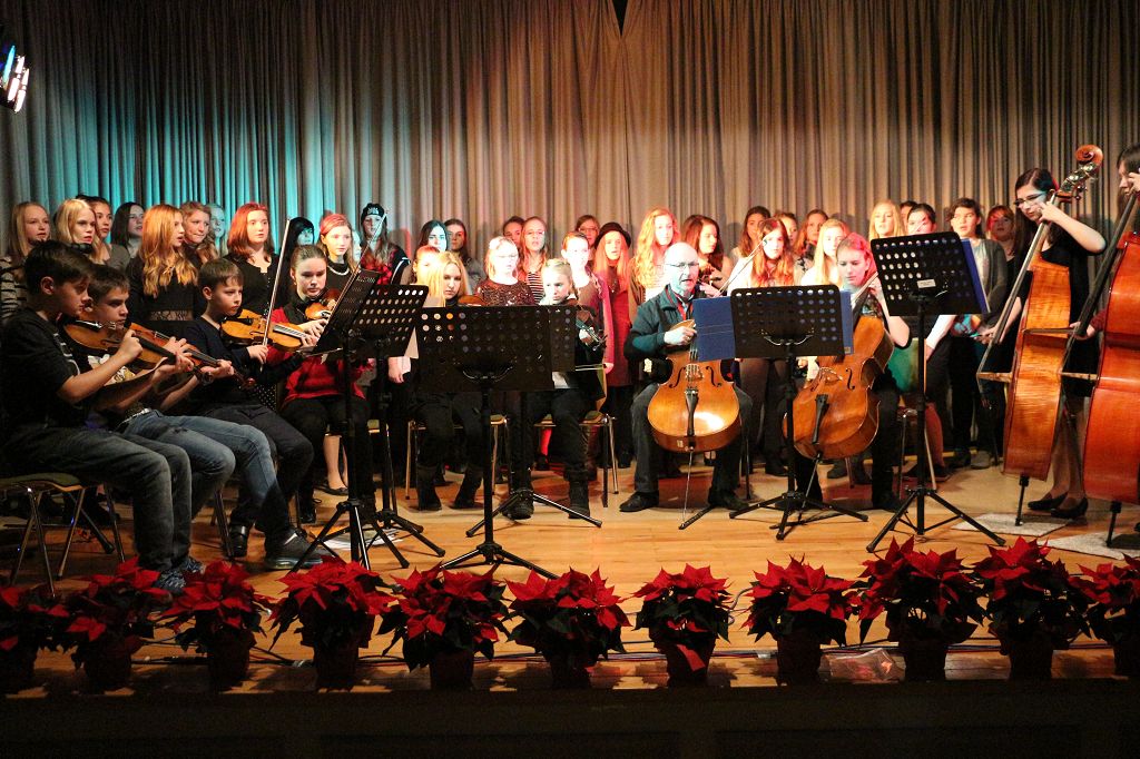 „Guten Abend, schön Abend“- mit dieser altbekannten Weihnachtsmelodie eröffneten die Schüler der Musikgruppe der 5. und 6. Klassen unsere diesjährige Weihnachtsestrade. Die festlich geschmückte Aula der Verwaltungsfachschule war – wie schon in den vergangenen Jahren - bis auf den letzten Platz gefüllt und das Publikum ließ sich von den ca. 150 mitwirkenden Schülerinnen und Schülern auf eine Reise durch die Adventszeit mitnehmen.