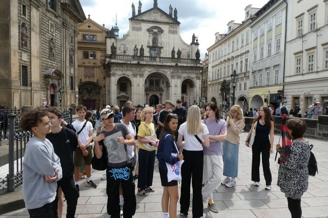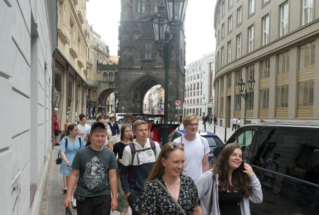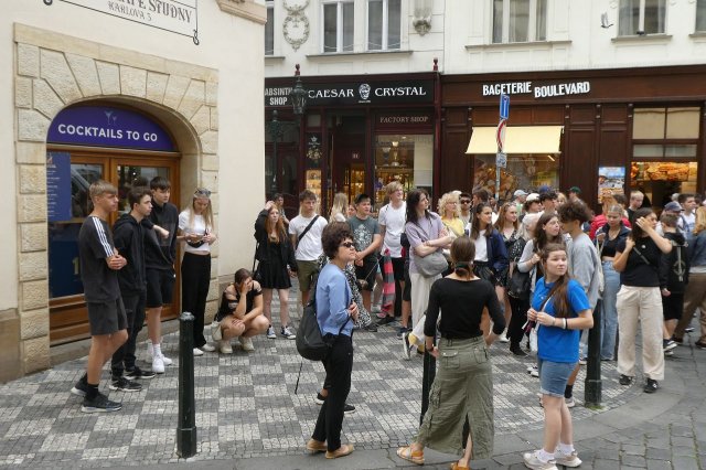 Am Dienstag gab es schon um 7:30 Uhr Frühstück, da um 9:30 Uhr der erste Teil unserer Führung durch die Stadt stattfand. Hier ging es vor allem durch die Altstadt, in eine Kirche und zur Karlsbrücke. Von 12 Uhr bis 20:30 Uhr hatten wir dann Freizeit. In dieser Zeit mussten wir uns selbstständig um Mittag und Abendessen kümmern, konnten die Stadt weiter besichtigen und mit den Lehrern in den Park gehen, um dort Volleyball zu spielen. Um 21:00 Uhr bekamen wir eine „Geisterführung“, in der uns Geschichten zu verlassenen Häusern, alten „gruseligen“ Erzählungen und Geistern erzählt wurden.