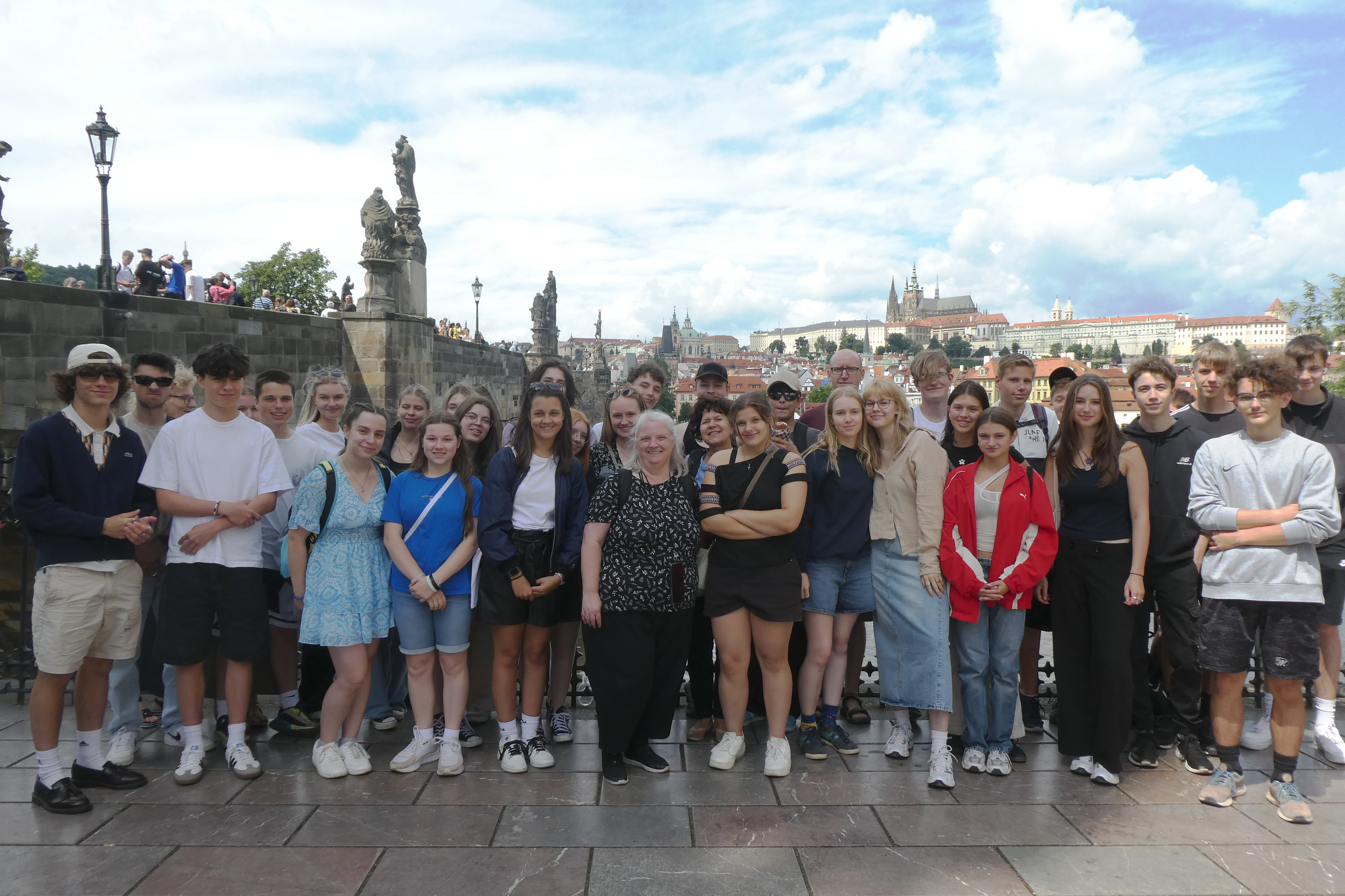 In der Woche vom 26.06. bis 30.06.2023 fand die Abschlussfahrt der 10. Klassen nach Prag statt. Zusammen mit Frau Hirsch, Frau Triebel, Frau Seiring und Herrn Laske ging es am Montag mit dem Bus um 9 Uhr los. Nach einer langen Busfahrt, bei 34 Grad, kamen wir schließlich um 15 Uhr in Prag an. Zum Hotel mussten wir dann ein Stück laufen und nachdem wir dort angekommen waren, ging es direkt los mit einer Stadtralley, bei der wir die Stadt selbstständig erkunden konnten und Fragen beantworten mussten.