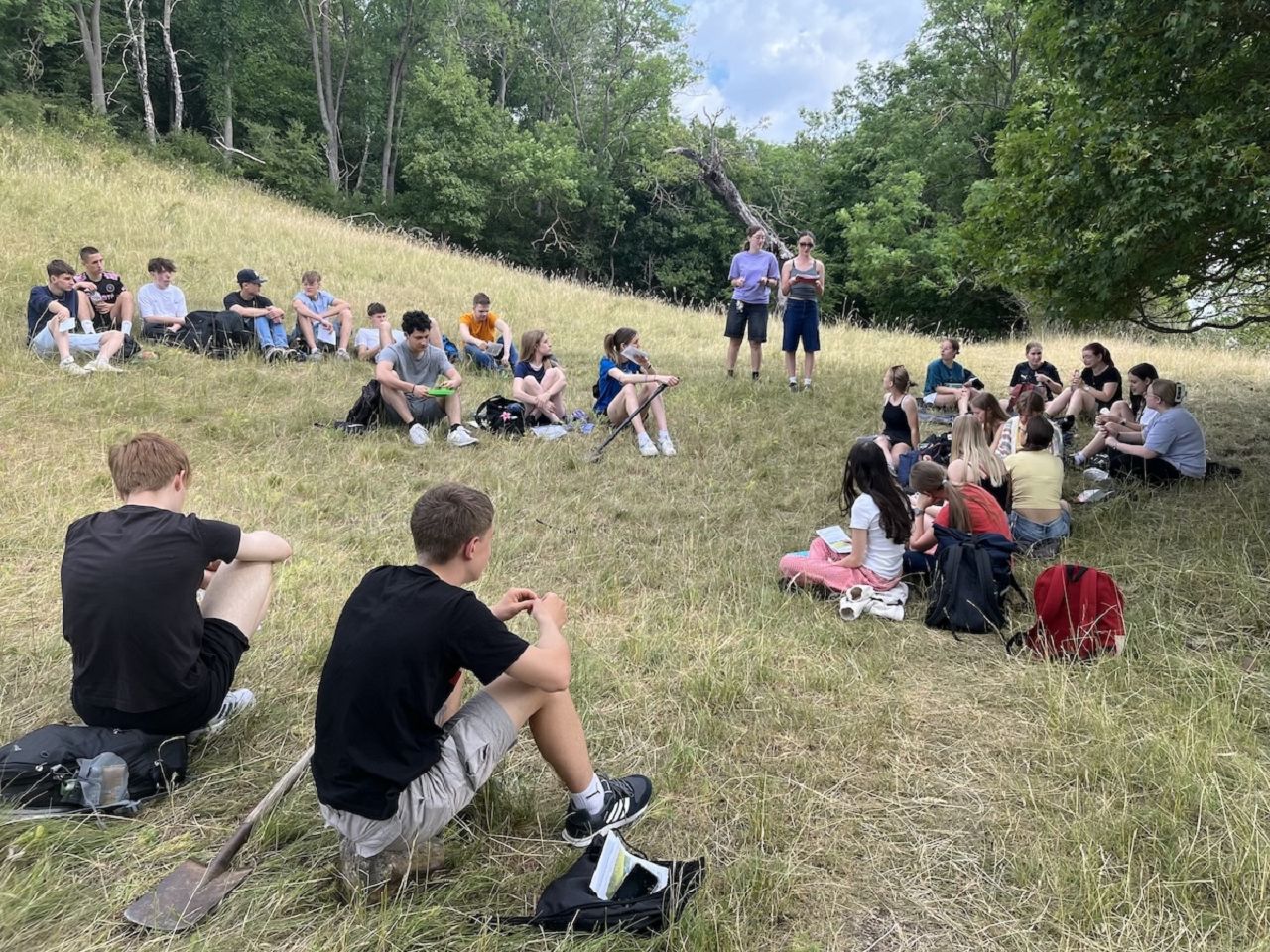 Im Rahmen des ökologischen Praktikums hatten wir Schülerinnen und Schüler des Biologie LK der Klassenstufe 11 die Gelegenheit, drei Tage in der Natur zu verbringen. Ziel war es, verschiedene Ökosysteme kennenzulernen, zu untersuchen und die gesammelten Daten auszuwerten. Am ersten Tag trafen wir uns um 8:30 Uhr an der Gaststätte Freudenthal in Wandersleben. Von dort ging es zum Hang der nahegelegenen Burg Gleichen, an dem ein bekanntes Ökosystem zu finden ist: der Trocken- bzw. Halbtrockenrasen. Nach kurzen Schülervorträgen vor Ort ging es an die praktische Arbeit. Mit Messgeräten, Schaufeln, Bestimmungsbüchern und einem guten Auge erkundeten die einzelnen Gruppen das Gebiet und dokumentierten ihre Ergebnisse. Anschließend traten alle selbstständig den Heimweg an. Der zweite Tag begann mit einer weiteren Reihe an Schülervorträgen über die Flora und Fauna an der Apfelstädt. Danach durften wir uns aussuchen, ob wir lieber den Fluss oder die angrenzenden Wiesen näher untersuchen wollen.