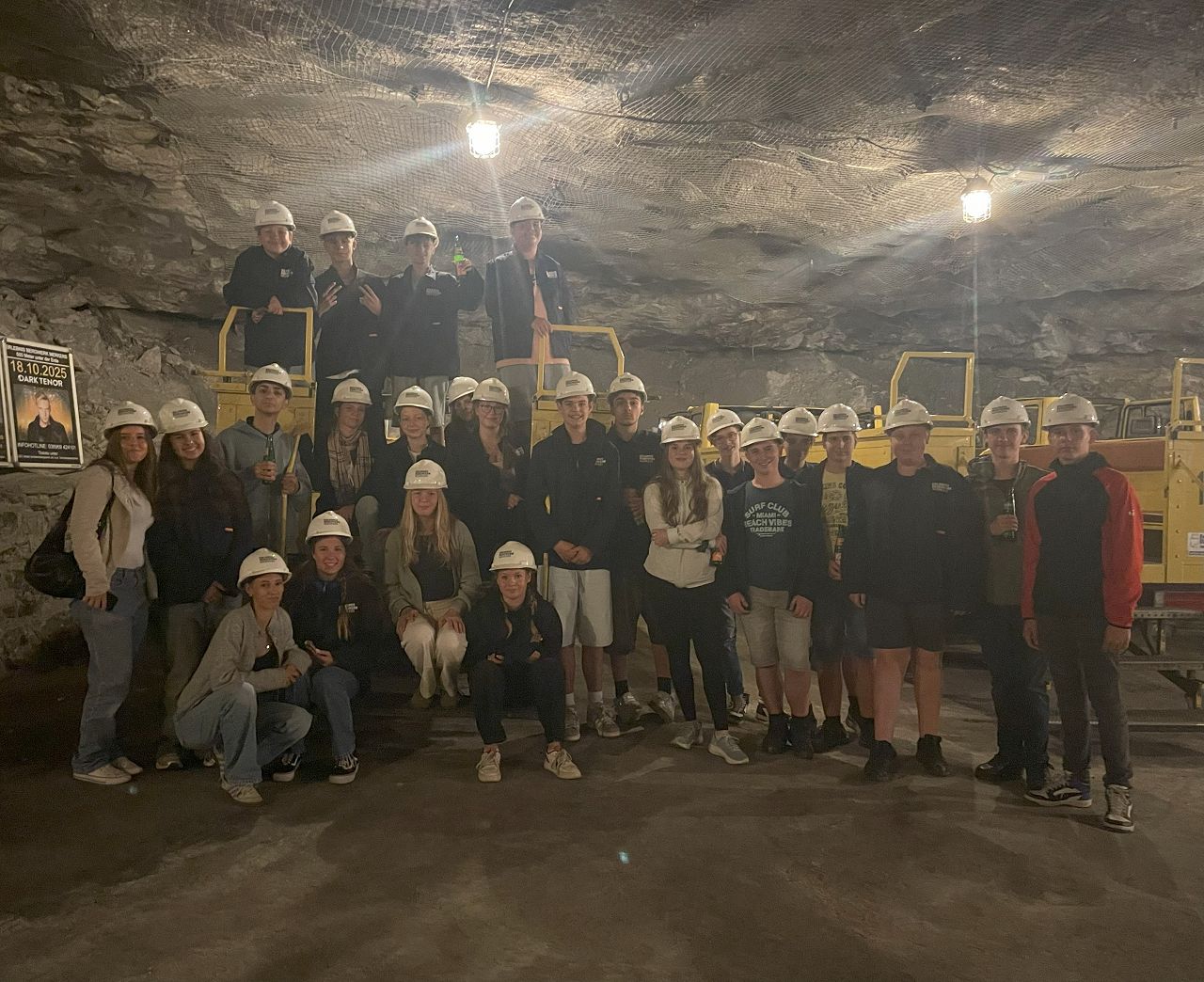 Unten angekommen wurden wir mit „Glück auf“ begrüßt. Kurz darauf fuhren wir klassenweise mit LKWs und besichtigten verschiedene Standpunkte. Im Laufe der Führung erfuhren wir viel Historisches, sahen uns Filme, alte Maschinen und eine atemberaubende Lasershow an. Je tiefer wir hineinfuhren, umso wärmer wurde es. Angekommen in 800 Meter Tiefe wurde uns eine spektakuläre Kristallgrotte gezeigt und wir hatten die Möglichkeit Getränke oder ein Andenken zu kaufen. Besonders großen Spaß hat uns die Fahrt auf dem Lkw gemacht. Die 30km/h Fahrtgeschwindigkeit fühlten sich an wie 60 km/h. Durch die vielen Kurven und den coolen Fahrstil hatten wir das Gefühl, als würden wir Achterbahn fahren.