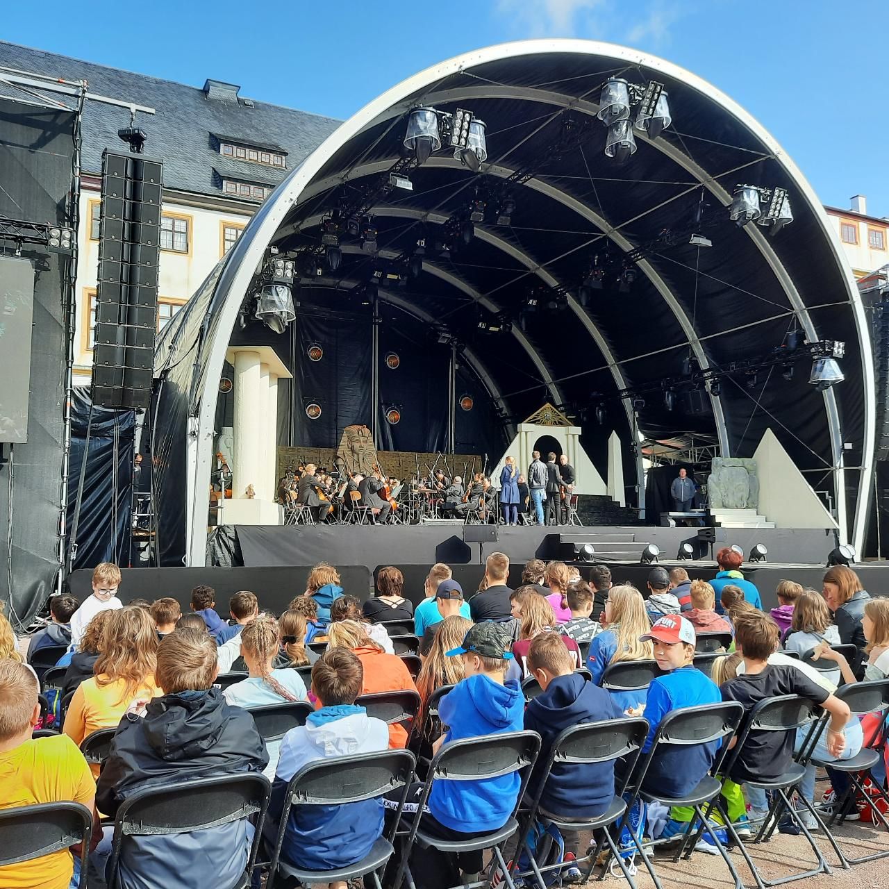 Am Vormittag des 31.08.2023 erlebten die Schüler und Schülerinnen der 6. Klassen eine eigens für Kinder und Jugendliche aufgeführte Version von Mozarts berühmter Oper "Die Zauberflöte". Die Veranstaltung fand im Rahmen des diesjährigen Friedenstein Open Air im Schlosshof statt. Auch das Wetter spielte mit, sodass die Besucher ungestört den berühmten Arien Taminos, Papagenos oder der Königin der Nacht lauschen konnten. Die Handlung des Stücks und das Leben Mozarts wurden zuvor im Unterricht vorbereitet, um den Schülerinnen und Schülern den Zugang zur Oper zu erleichtern.