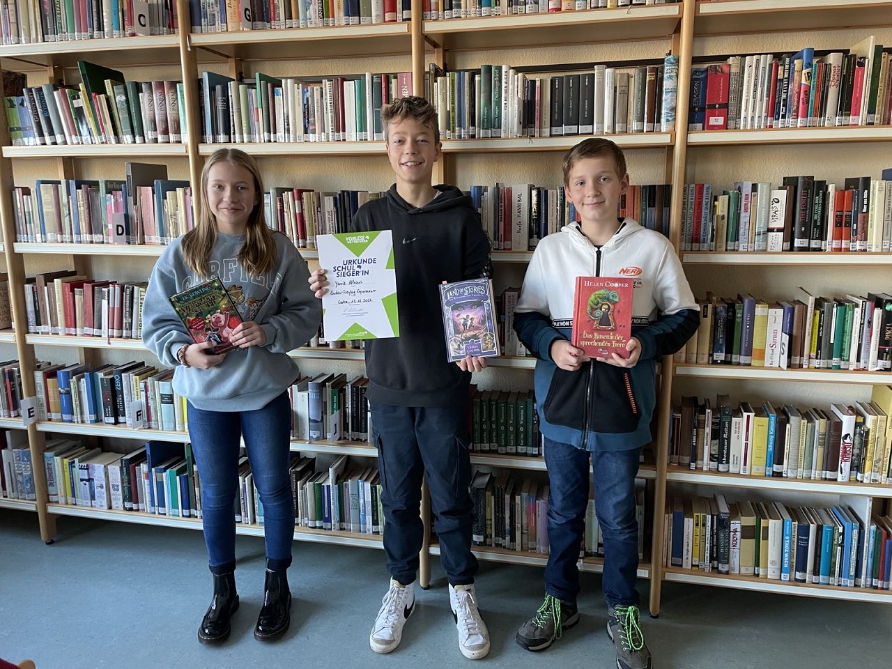 Die besten Vorleser aller 6. Klassen - Theresa, Yannik und Alexander - wetteiferten miteinander zur Ermittlung des Schulsiegers. Am meisten überzeugte dabei Yannik. Er wird unser Gymnasium im Frühjahr in der nächsten Runde vertreten.