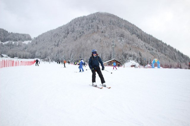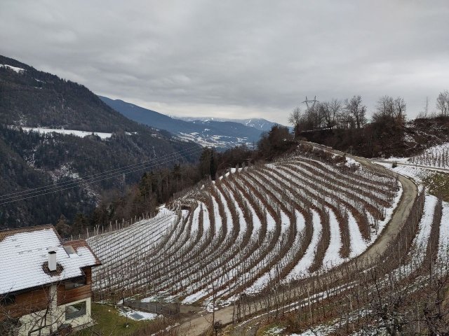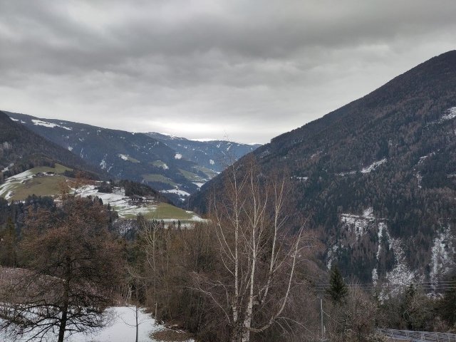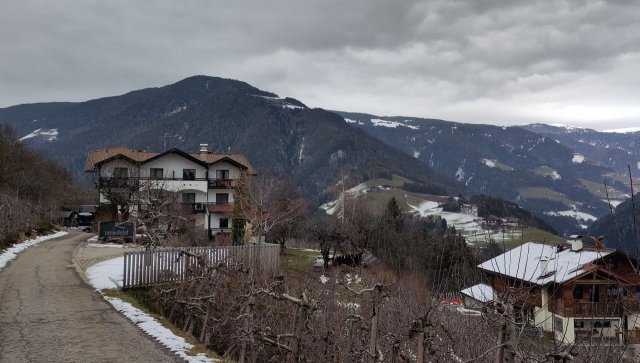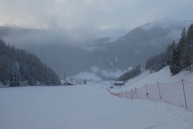 Skiausleihe noch an diesem Tag war aufgrund der Lenkzeiten leider nicht mehr möglich, dafür gab es aber einen kleinen Schneespaziergang über umliegende Apfelplantagen. Das Skigebiet der nächsten Tage blieb hinter Wolken verborgen. Mal sehen, was die nächsten Tage bringen...