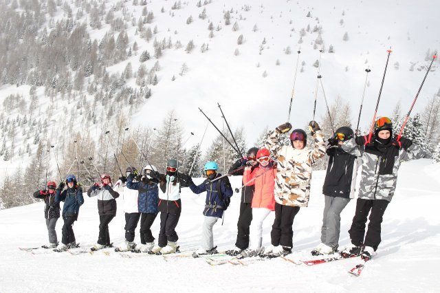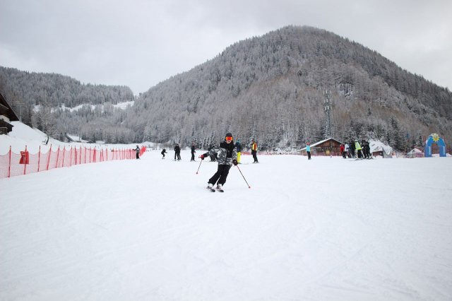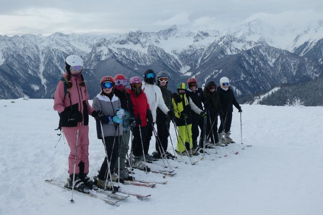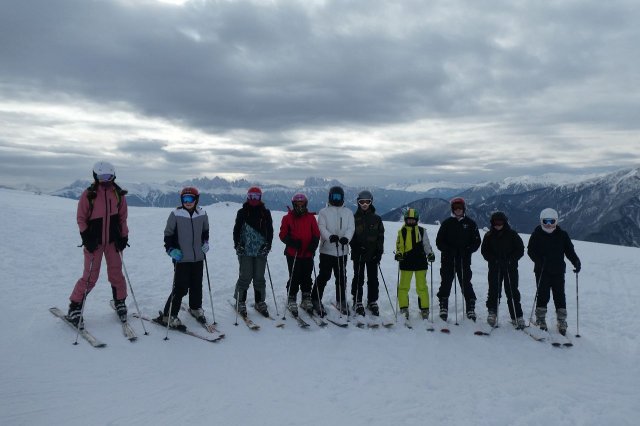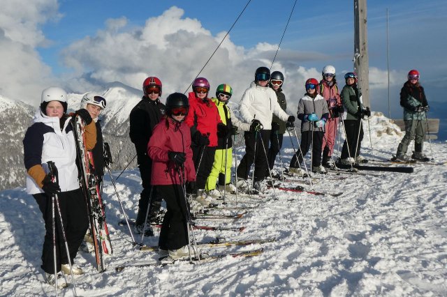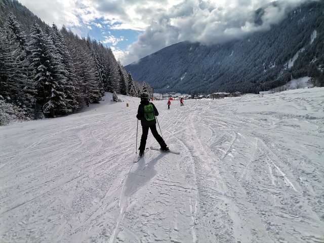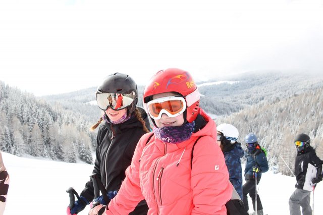 Nun ging es los! Damit sich die Verletzungsgefahr reduzierte, begannen alle mit einer Erwärmung. Den Anfängern wurden als erstes die Grundlagen beigebracht, während die Fortgeschrittenen sich schon auf die blaue Piste machten. Grundlegend übten alle Gruppen das Bremsen und Kurven fahren. Im Jochtal/Gitschberg gaben die blutigen Anfänger ihr bestes und kamen dabei teilweise an ihr Limit, aber machten trotzdem Fortschritte. Die die schon besser auf den Beinen standen, trauten sich nun an die vereiste und windige Piste. Die fortgeschrittenen Anfänger probierten dabei die blaue Piste, zur gleichen Zeit befanden sich die ,,Profis“ aber schon auf der abenteuerlichen roten Piste, das synchrone Fahren wurde dabei herausgefordert.