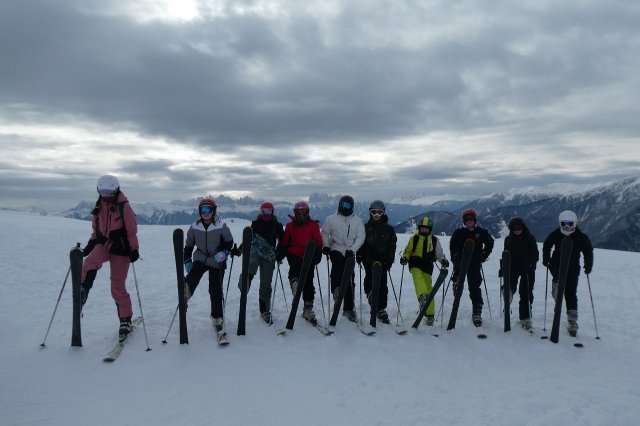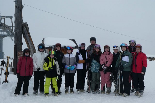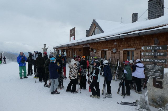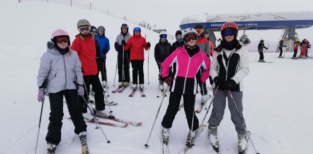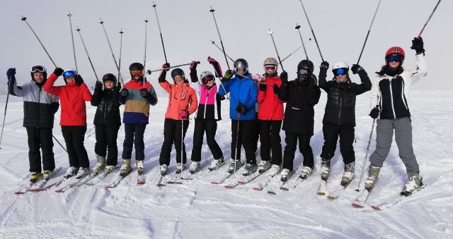 Beim Skidepot angekommen war die Skiausrüstung anzuziehen und los ging es in unseren zugewiesenen Gruppen auf die Piste.