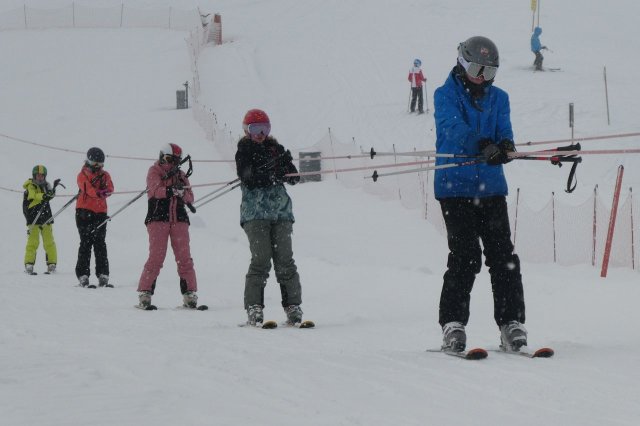 Für die Anfänger ging es erstmal auf die blaue Piste, um weiter zu üben. Ein Highlight des Tages: die Fahrt mit dem Tellerlift. Das ist gar nicht so einfach, aber mit ein paar Schwierigkeiten haben die Ski-Neulinge ihn doch gemeistert. Sie haben großartige Fortschritte gemacht.