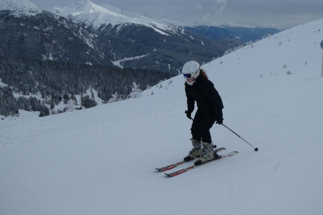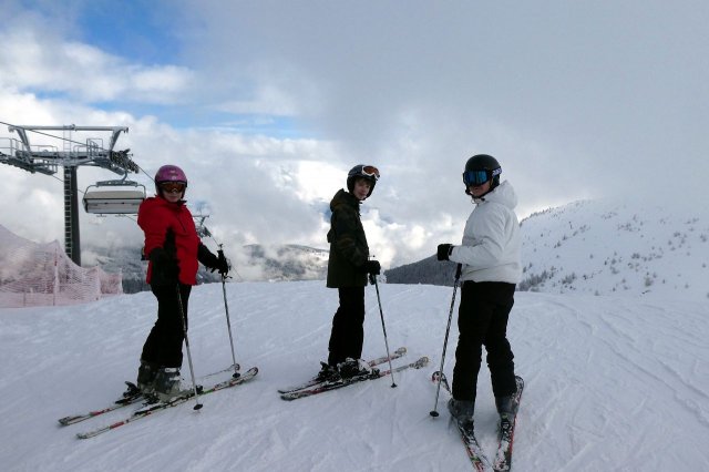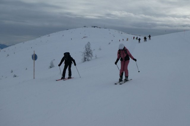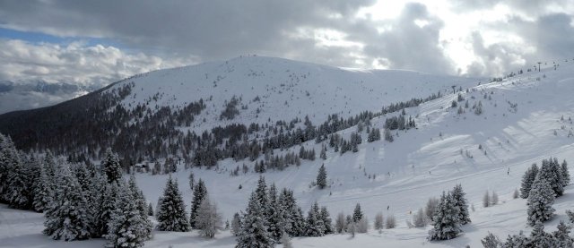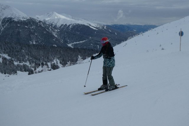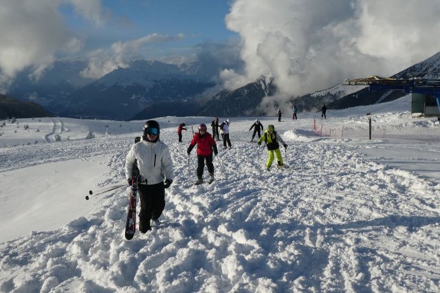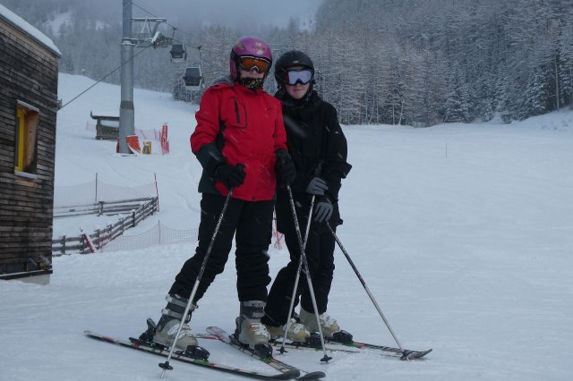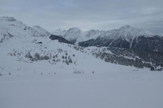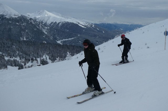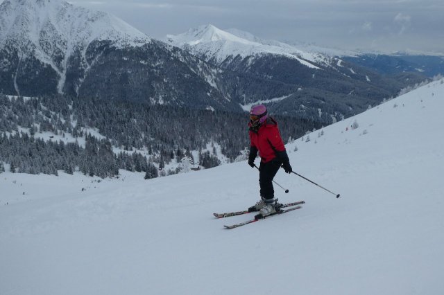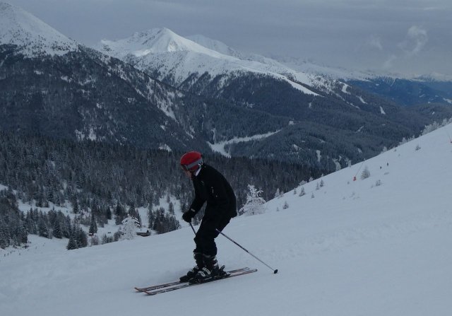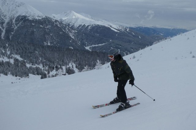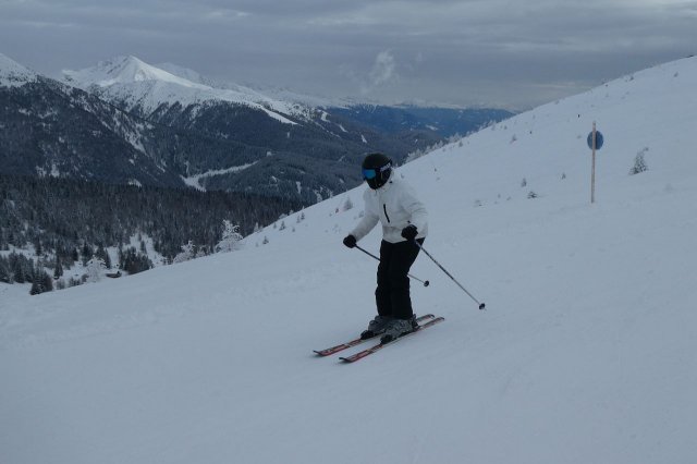 Der Vormittag bot noch einige herrliche Aussichten in die umliegende Gebirgslandschaft. Später zog es zu. Dennoch war es ein herrlicher Skitag. Die Pisten waren durch den Neuschnee des Vortages optimal und es machte einfach nur Spaß, technische Übungen oder auch einige durchgängige Abfahrten darin zu fahren.