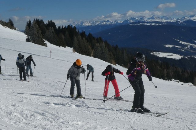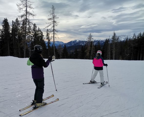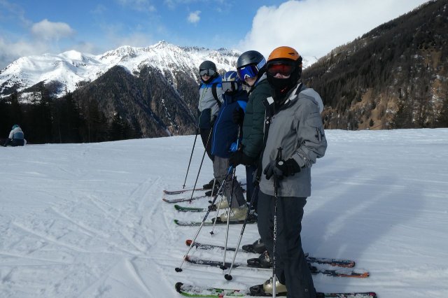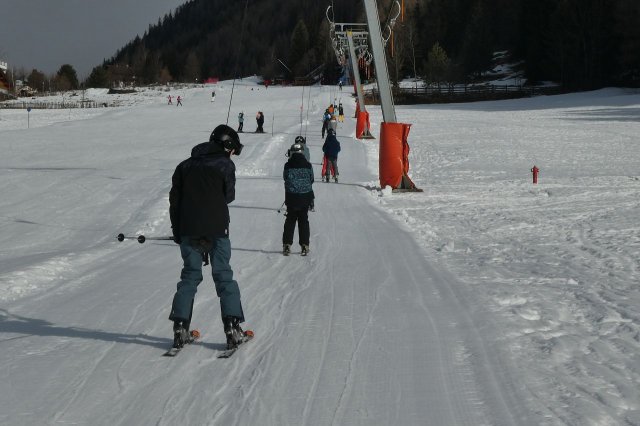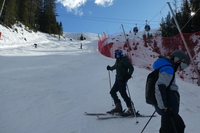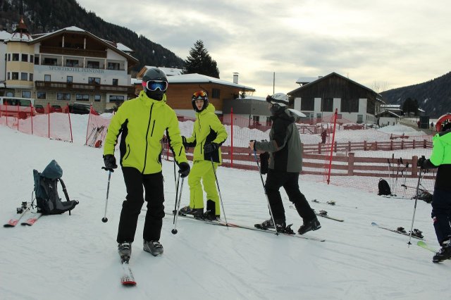 Nach der Ankunft im Skigebiet begaben sich alle in ihre Gruppen. Eine Anfängergruppe begab sich zu einer der blauen Pisten, die andere fuhr gleich wieder oben im Skigebiet Jochtal auf die rote Piste. Die Amateur- und Profi-Gruppen fuhren mit der Gondel zum Gitschberg. Es waren intensive drei Stunden und wir freuten uns alle auf das Mittagessen im Restaurant „Jochtal“. Gut gestärkt ging es zurück auf die Pisten. Heute fuhren wir pünktlich zurück zur Pension. Damit ging ein sonniger und erfolgreicher Skitag zu Ende. Nach dem leckeren Abendbrot mit Schnitzel und Bratkartoffeln ging es für alle Schüler zum musikalischen Karaoke-Abend. Ein Riesenspaß.
