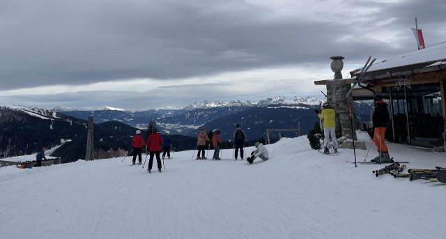 Nach ein paar Stunden Skifahren sind wir mit dem Skilift zur Berghütte gefahren, wo wir Mittag gegessen haben. Für den Großteil ging es wieder auf die Piste, andere haben lieber einmal das Skifahren ausgesetzt..