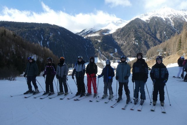 Nun neigt sich auch das Skilager dem Ende zu. Wie gewöhnlich begann unser Tag gegen sieben Uhr mit einem ausgewogenen Frühstück und gegen neun auf der Piste. Die Anfängergruppe von Herrn Hess startete sofort und dazu erfolgreich mit einer anspruchsvollen Skiprüfung über die Übungen der letzten Tage. Einige Anfänger wagten sich sogar an die Talabfahrt der Schwierigkeit Rot. In der Gruppe der Fortgeschrittenen, geleitet von Frau Raddatz, übten sich die Skifahrer mit einer zügigen Erwärmung ein und mussten sich ebenfalls an die Prüfung wagen. Auch diese meisterten sie mit Erfolg und wurden später zum freien Fahren mit den Anfängern gelassen. Die Profis legten locker mit einer Roten Piste als Erwärmung los und fuhren per Gondel zum Gitschberg zum Skifahren. Aufgrund der heutigen Wetterbedingungen konnten alle Gruppen nur eingeschränkt fahren, weshalb auch u. A. die Profis zurück ins Jochtal kehren mussten. Es war warm und die oben gelegenen Pisten waren durch Niederschlag überfroren. Mit einem freudigen Lächeln verließen wir damit das Skigebiet zum letzten Mal.