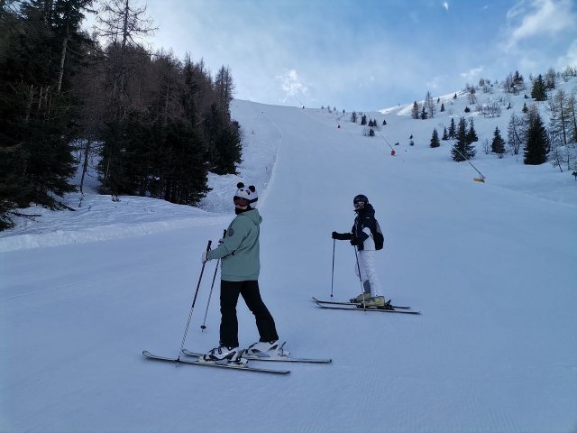 Unserer Tag startete heute 7:30 Uhr mit einem leckeren Frühstück und einem Stromausfall im Obergeschoss. Von diesem Schreck erholt, fuhren wir mit neuer Energie ins Skigebiet. Jedoch war es zu beginn nebelig, aber es klarte sich im laufe des Tages immer weiter auf. Dies hinderte uns jedoch nicht daran weiter hin Ski zu fahren oder zu lernen. Das Highlight unseres Tages war, dass wir selber weiter Fortschritte erkennen konnten und auch schon schwierigere Pisten bewältigen konnten wie zum Beispiel die Profis die „schwarze Piste“ (die schwerste/steilste Piste), die Amateure die, die „Panorama Piste“ genauso wie die Anfänger, die sich an der „roten Piste“ (die mittlere Piste) probierten und diese größtenteils erfolgreich meisterten.