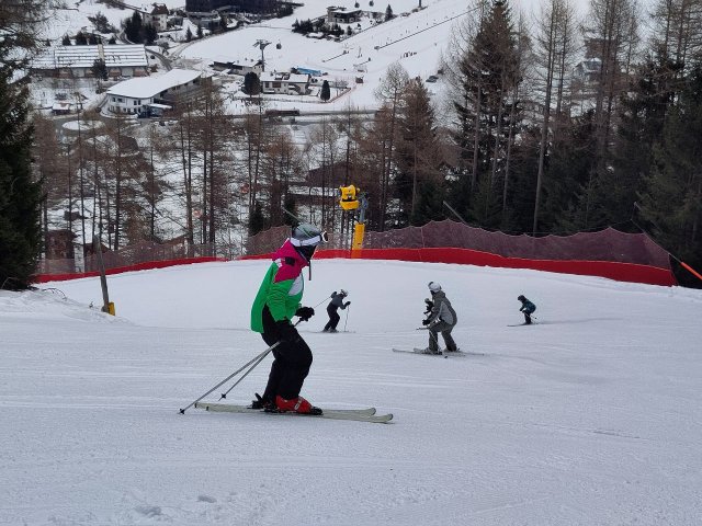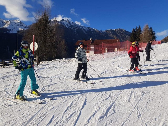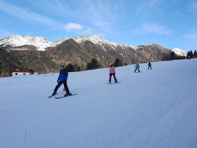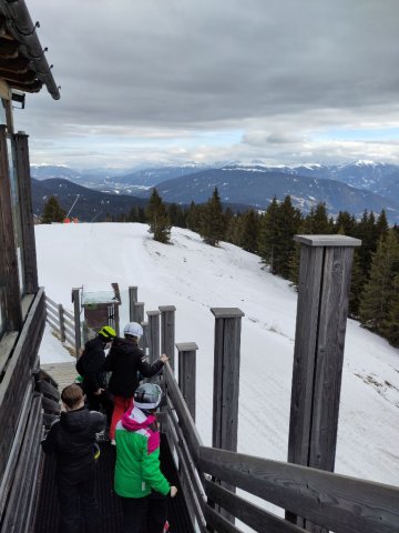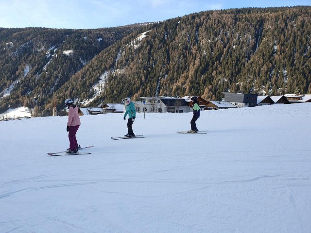 Mit Sonnenstrahlen und vorfreudigen Schülern startete der 4. Tag auf der Skipiste nicht weit von unserer Unterkunft in Natz. Rasch setze ein eine Nebelwand ein, doch dies hinderte uns nicht daran weiterhin große Lernerfolge zu erzielen. So konnten besonders die Anfängergruppen die Lehrer mit variationsreichen Fahren zufriedenstellen, MOTTO: von Pizza zu Pommes!
