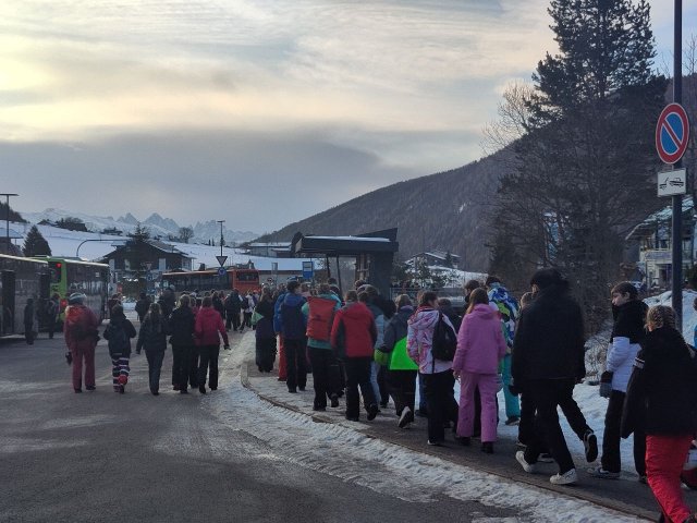 Der 3. Tag startete sehr entspannt. Wir trafen uns diesmal rechtzeitig am Bus und kamen pünktlich an der Skipiste an. Unsere am Vortag im Skidepot ausgeliehene Ausrüstung, welche wir in den Spinden eingelagert haben, konnten wir heute ohne Zeitstress entnehmen.