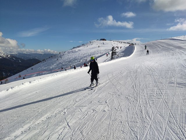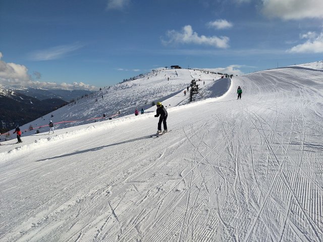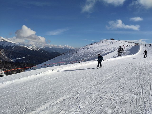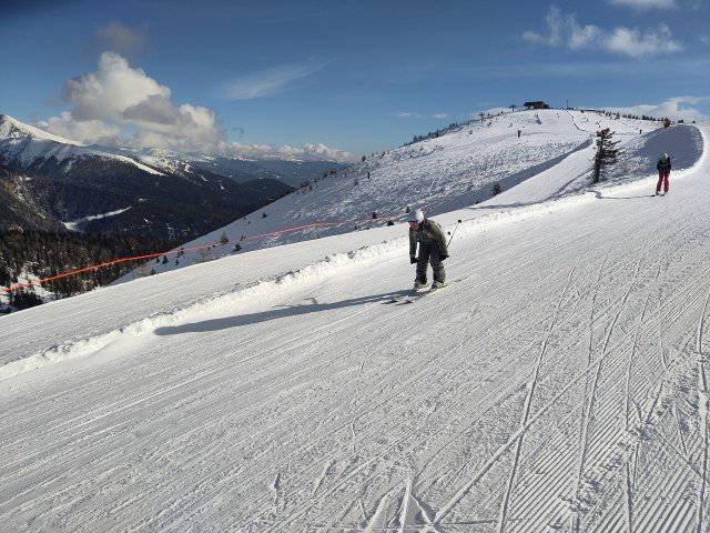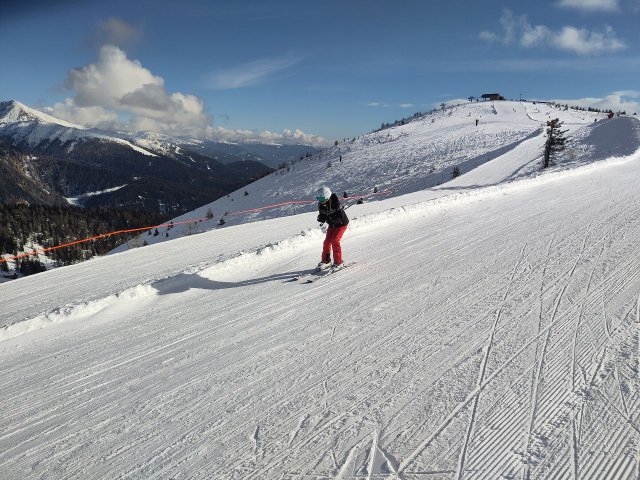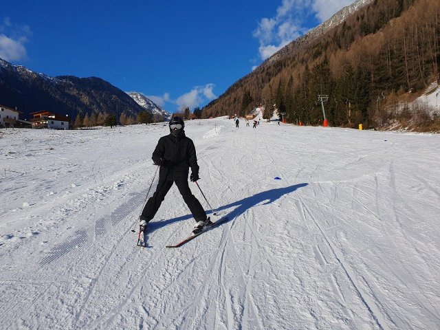 Leider ist dies schon der letzte Tag auf der Piste. Als wir zum letzten mal unsere Sachen aus dem Spind geholt haben, ist die Profi-Gruppe zum ersten mal die schwarze Talabfahrt gefahren, welche erstaunlicherweise einfacher war als erwartet. Anfangs war das Wetter noch gut, aber als wir dann rüber zum Gitschberg gefahren sind, wurde dies schlagartig schlechter. Nebel erschien, wodurch die Sicht stark eingeschränkt wurde und es schneite. Sehen konnte man fast nur ohne die Brille, da diese direkt beschlagen war. Wir hatten vor, die 15 Kilometer langte Talabfahrt zu nehmen, doch dies erwies sich als sehr viel schwieriger als wir dachten aufgrund des schlechten Wetters. Das Ende der Abfahrt war so gut wie komplett eben, was uns die Fahrt auch noch mal schwieriger gemacht hat. Deswegen sind wir verfrüht ins Skigebiet Jochtal zurück gefahren.