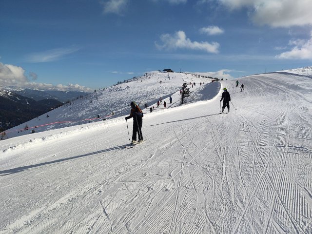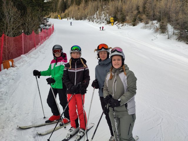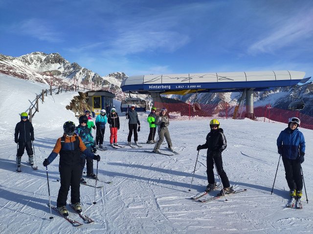 Am zweiten Skitag konnte jeder weiter an seinen Fahrkünsten in den verschiedenen Gruppen mit angepassten Leistungsniveaus arbeiten. Während die Anfängergruppen, geleitet von Herr Hollander und Herr Hess, weiter die Grundübungen und das sichere Fahren übten, wagten sich die fortgeschrittenen Schüler, in Begleitung von Herr Laske und Leonie, an die roten Pisten und erkundeten sogar ein neues Skigebiet.