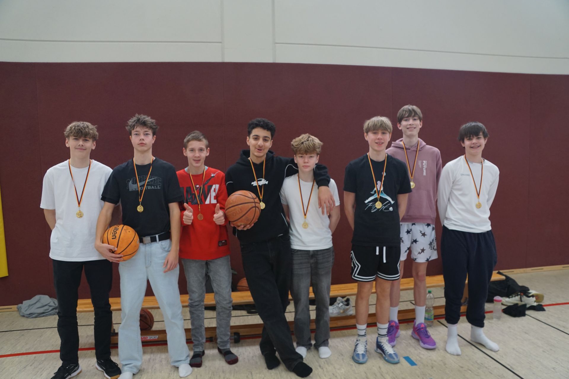 Nach drei Minuten Spielzeit stand es am 14.01.2025 im Schulamtsfinale der Wettkampfklasse III im Basketball gegen die Goetheschule aus Ilmenau bereits 10:0 für das GFG-Team. In der Besetzung Ben B., Yannik A., Alexander S., Younes B., Ian M., Nini D., Lennox G. und Bastian F. ließen die Jungs durch eine sehr solide und geschlossene Mannschaftsleistung bis zum Ende (2x12 min Spielzeit) nichts mehr „Anbrennen“. Am Ende hieß es 45:17 für das GFG. Das bedeutete neben dem Arnoldi Gymnasium (WK IV und II) den Einzug in das Landesfinale der WK III männlich – herzlichen Glückwunsch und viel Erfolg für den in Mühlhausen im März stattfindenden Wettkampf!