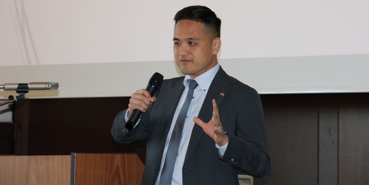 Kenichiro Toko, der US-Generalkonsul aus Leipzig, besuchte am 9. Mai 2023 die Arnoldischule in Gotha. Gothas Oberbürgermeister Knut Kreuch hatte die Schüler aller elften Klassen der Gothaer Gymnasien zu einer Diskussionsrunde eingeladen, so konnten auch wir den Diplomaten kennenlernen.