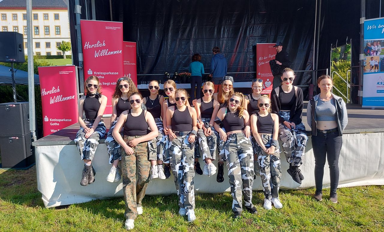 Anlässlich des 5. Gothaer Schlossparklaufes präsentierte sich die Tanz AG unter Leitung von Frau Machleb erstmals auf großer Bühne. Lilly, Jette S., Klara, Lisa, Ariadna, Berenike, Luise, Mara, Lena, Jette K., Nikita und Jill zeigten ihren gemeinsam gestalteten Tanz zum Lied Power von Will.I.am und Justin Bieber. Bei strahlendem Sonnenschein und bestens ausgestattet mit neuen Kostümen (gesponsert vom Förderverein) zeigten die Mädchen einen gelungenen Auftritt.